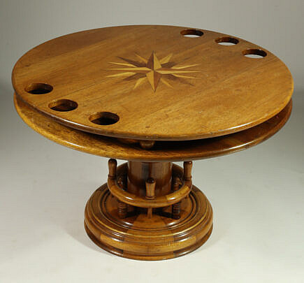 Nautical Style Multi-Wood Round Coffee Table with Central Star Inlays