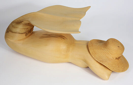 Timothy Herlocker Carved Basswood Mermaid Sunbather Sculpture