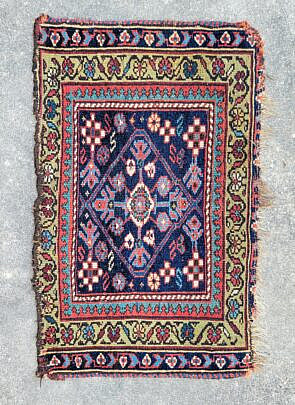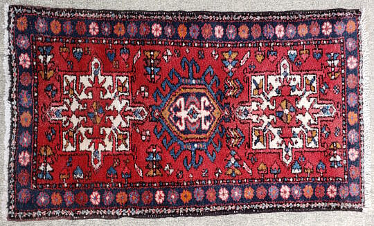 Vintage Hand Knotted Wool Heriz Carpet with Center Medallion