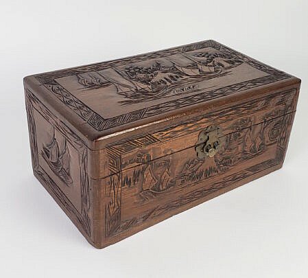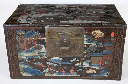 Leather and Brass Bound Chinese Export Camphorwood Trunk, 19th Century