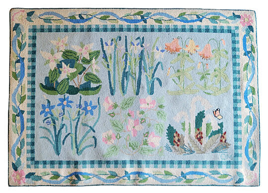 Claire Murray Room Sized Hooked Rug Floral Pattern With Song Birds