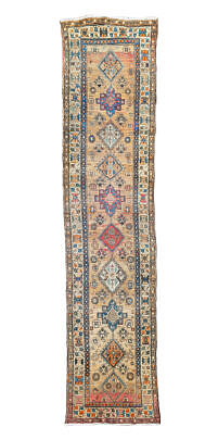 Light Blue Hand Knotted Natural Dyes Afghan Ersari Oriental Runner Rug
