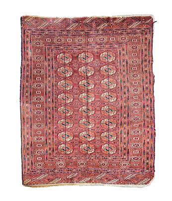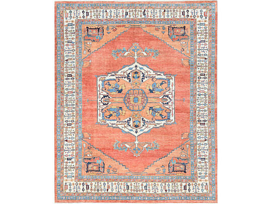 Coral Hue Afghan Peshawar Hand Knotted Natural Dyed Wool Carpet in a Serapi Design