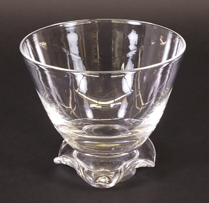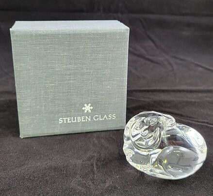Vintage Signed Steuben Clear Crystal Glass Ram’s Head Handcooler