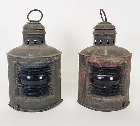Pair of Antique Tin Port and Starboard Ship Lights, 19th Century