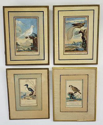 Four Antique French Hand Colored Engravings of Bird Species, 18th Century
