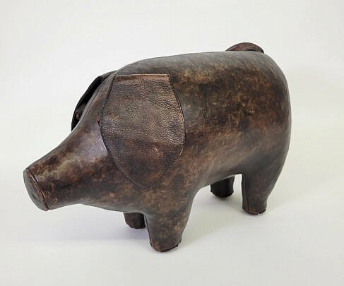Vintage Dimitri Omersa Abercrombie & Fitch Leather Pig Footstool Ottoman