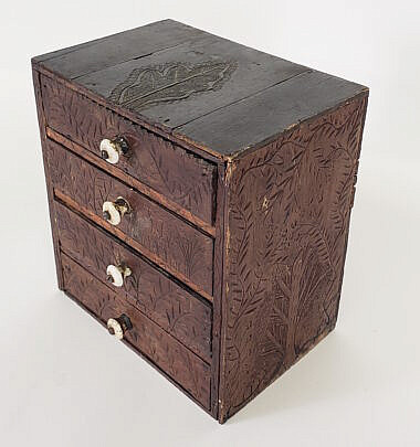 Antique American Folk Art Four-Drawer Salesman Sample Chest of Drawers