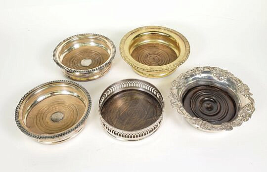 Five Antique English Sheffield Silver Plated Wine Coasters, 19th Century