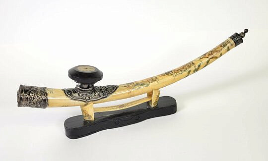 Antique Chinese Ming Guo Engraved Bone Opium Pipe