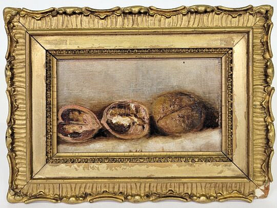 Antique Oil on Panel Miniature Still Life Painting of Walnuts, circa 1880