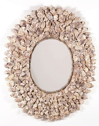 Large Contemporary Nautical Oyster Shell Encrusted Oval Mirror