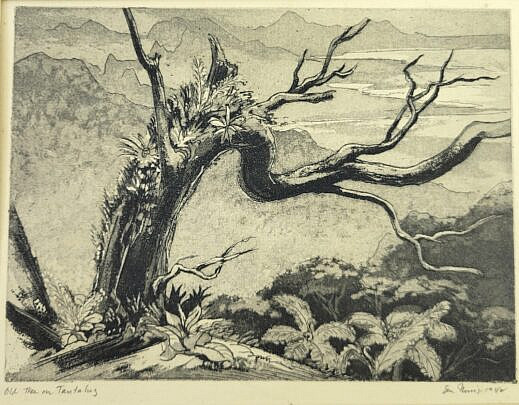 1942 Ben Norris Aquatint Engraving “Old Tree on Tantalus” Hawaii