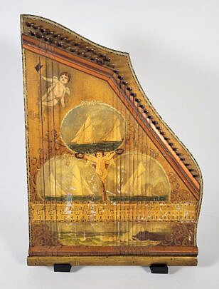 Antique Nautical Paint Decorated Zither Musical Instrument, circa 1880