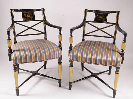 Pair of Regency Style Open Armchairs with Upholstered Seats