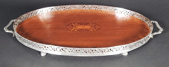 Vintage Inlaid Mahogany and Silver Plated Gallery Serving Tray