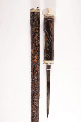 Sumatra Indonesian Horn Grip and Scrimshawed Bone Cane