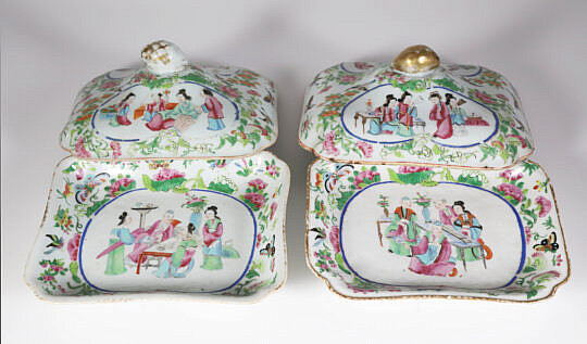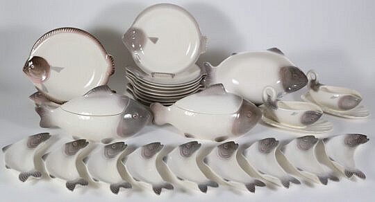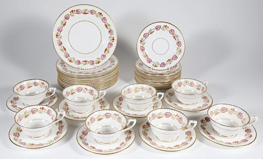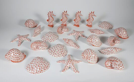 Five Pieces of Herend Hungary Hand-painted Porcelain Including a Teapot, Plate, Saucer, and Bowl