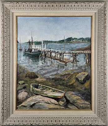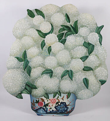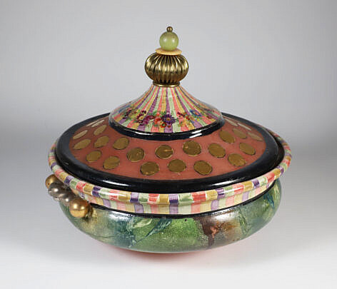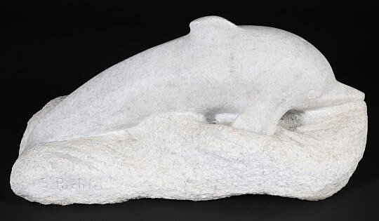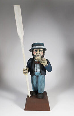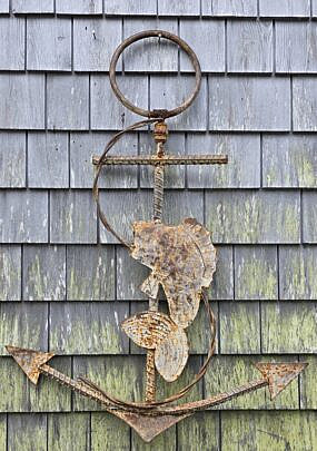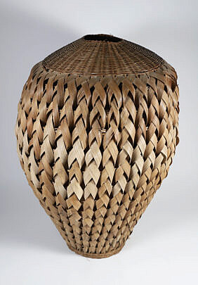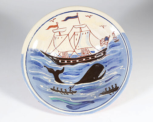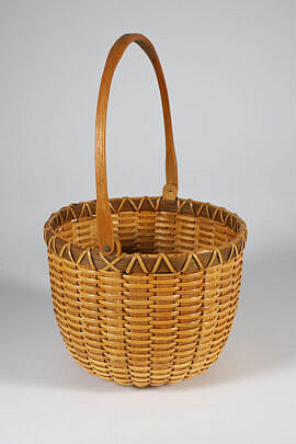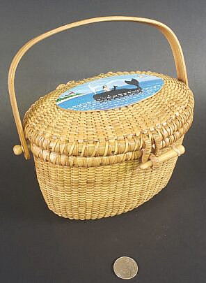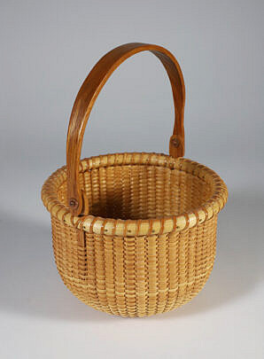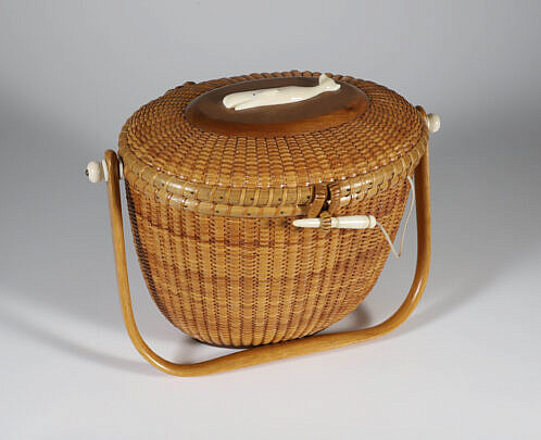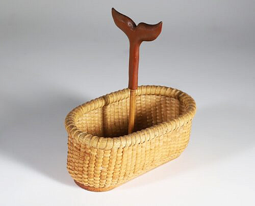 Jean M. Valerio Woven Round Open Nantucket Basket with Carved Wood Carved Scallop Shell, circa 2002