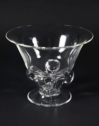 Signed Steuben Clear Crystal Large Footed Centerpiece Bowl Designed by Donald Pollard, circa 1961