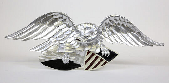 Antique Commemorative Silk Needlework with Spread Winged Eagle, American Flag, and Crest, circa 1925
