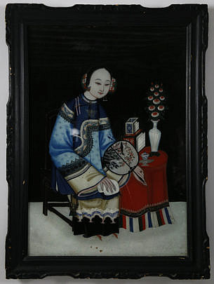 Chinese Export Reverse Painting on Glass “Portrait of a Woman”, circa 1840