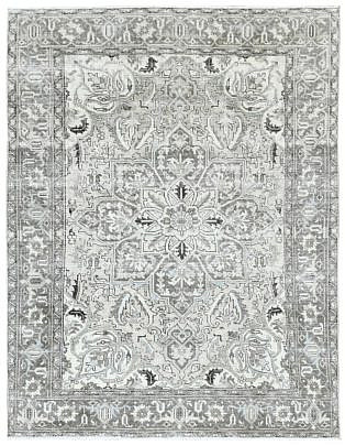 Vintage Stone Washed Grey Persian Heriz Wool Carpet