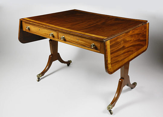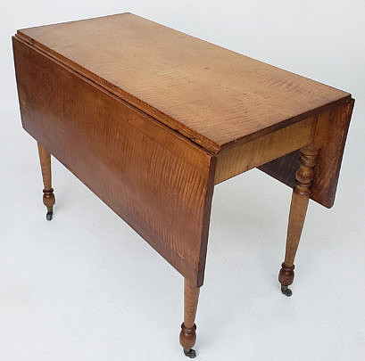 19th Century New England Sheraton Tiger Maple Drop Leaf Table