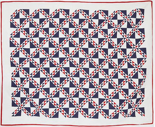 Vintage Patriotic Red White and Blue “Flying Geese” Patchwork Quilt circa 1940s