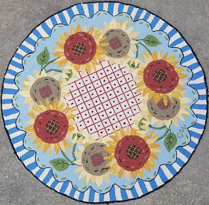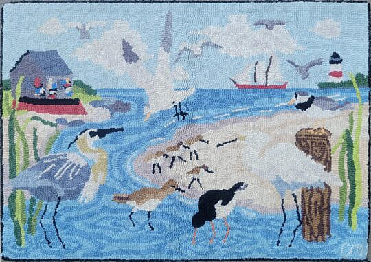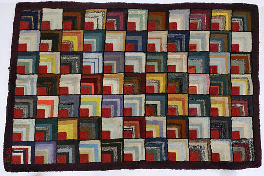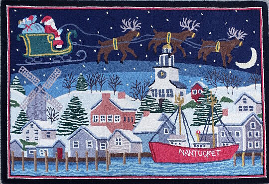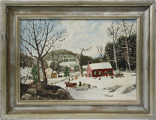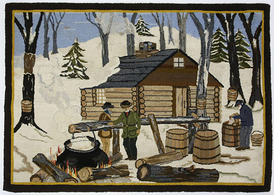 Folk Art Scenic Hand Hooked Rug “New England Maple Sugar Camp”