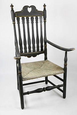 American William and Mary Heart and Crown Black-Painted Banister Back Armchair, circa 1710-1730