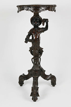 Venetian Rococo Style Carved and Inlaid Wood Blackamoor Stand, 19th Century