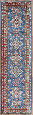 Hand Knotted Blue Afghan Wool Kazak Oriental Carpet