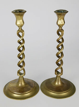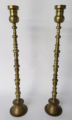 Pair of Heroic Vintage Brass Multi Turned Floor Standing Candlesticks