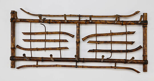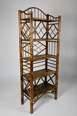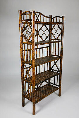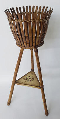 B & R Works Vintage Bamboo and Rattan Two Tier Plant Stand, Hoboken, N.J.