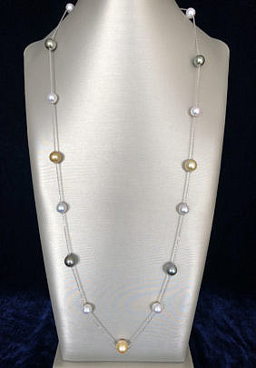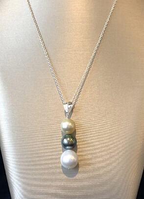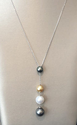 11.5mm – 9mm South Sea White, Gold, and Grey Tahitian Graduated Pearl Necklace