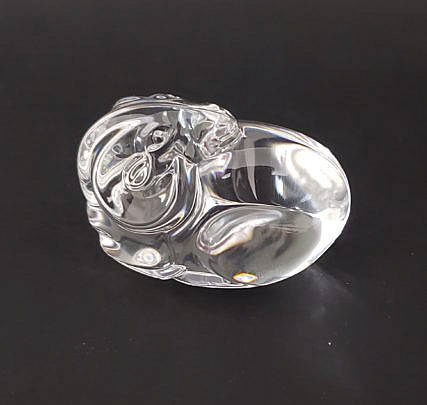 Vintage Signed Steuben Clear Crystal Figural Ram Hand Cooler Paperweight