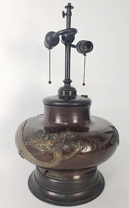 19th Century Japanese Meiji Period Bronze Mixed Metal Lamp