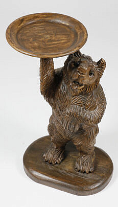 Vintage Black Forest Style Carved Wood Bear Cocktail Table