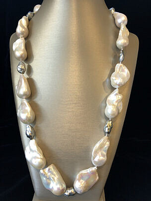 15mm-17mm Cultured White Baroque Fresh Water and Grey Keshi Pearl Necklace