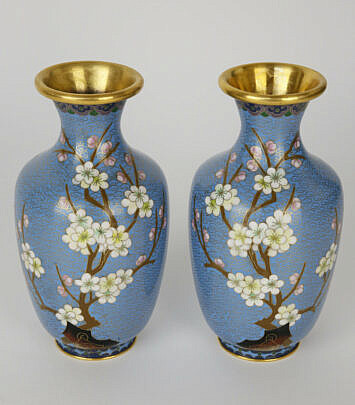 Pair of Cloisonne Vases Decorated with Cherry Blossoms and Birds