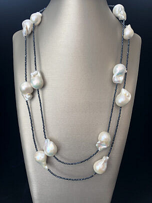 White Baroque Fresh Water Pearl and Spinel Necklace