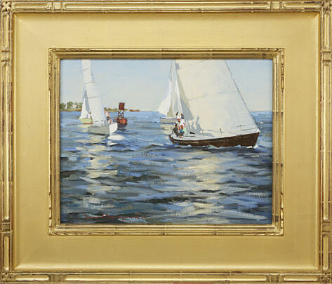 William Lowe Oil on Canvas “Sailing off Nantucket Harbor”