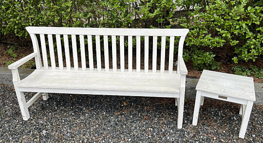 Weatherend White Yacht Finish Slatted Settee and Side Table