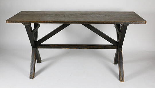 Antique English Oak Rectangular Top Sawbuck Table