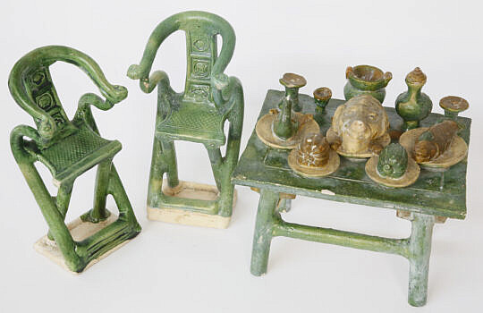 Miniature Chinese Pottery “Feast” Table, Early 20th Century