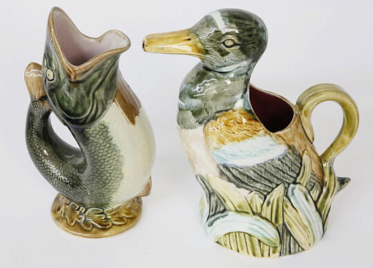 Vintage Majolica Duck and Fish Pitchers