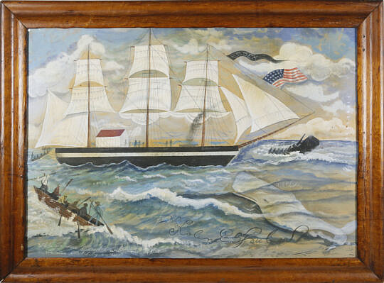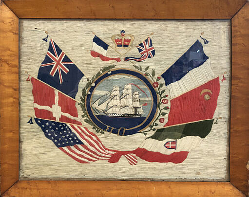 British Woolie with Clipper Ship Cartouche and Allied Flags, 19th Century
