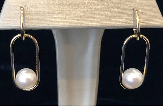 Fine Pair of 7.5mm-8mm Akoya Cultured Pearl 14k Gold Earrings