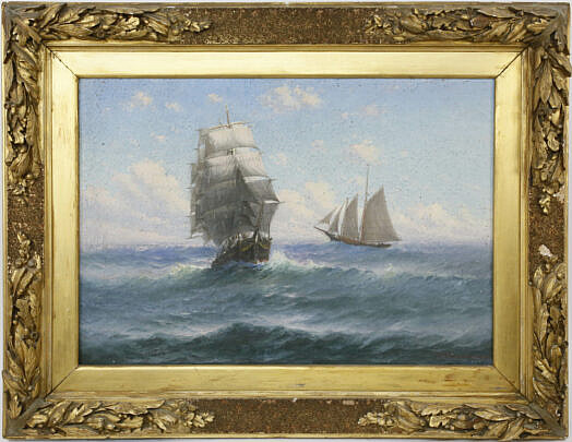 Theodore Victor Valenkamph Oil on Canvas “Ship and Schooner on the High Seas”